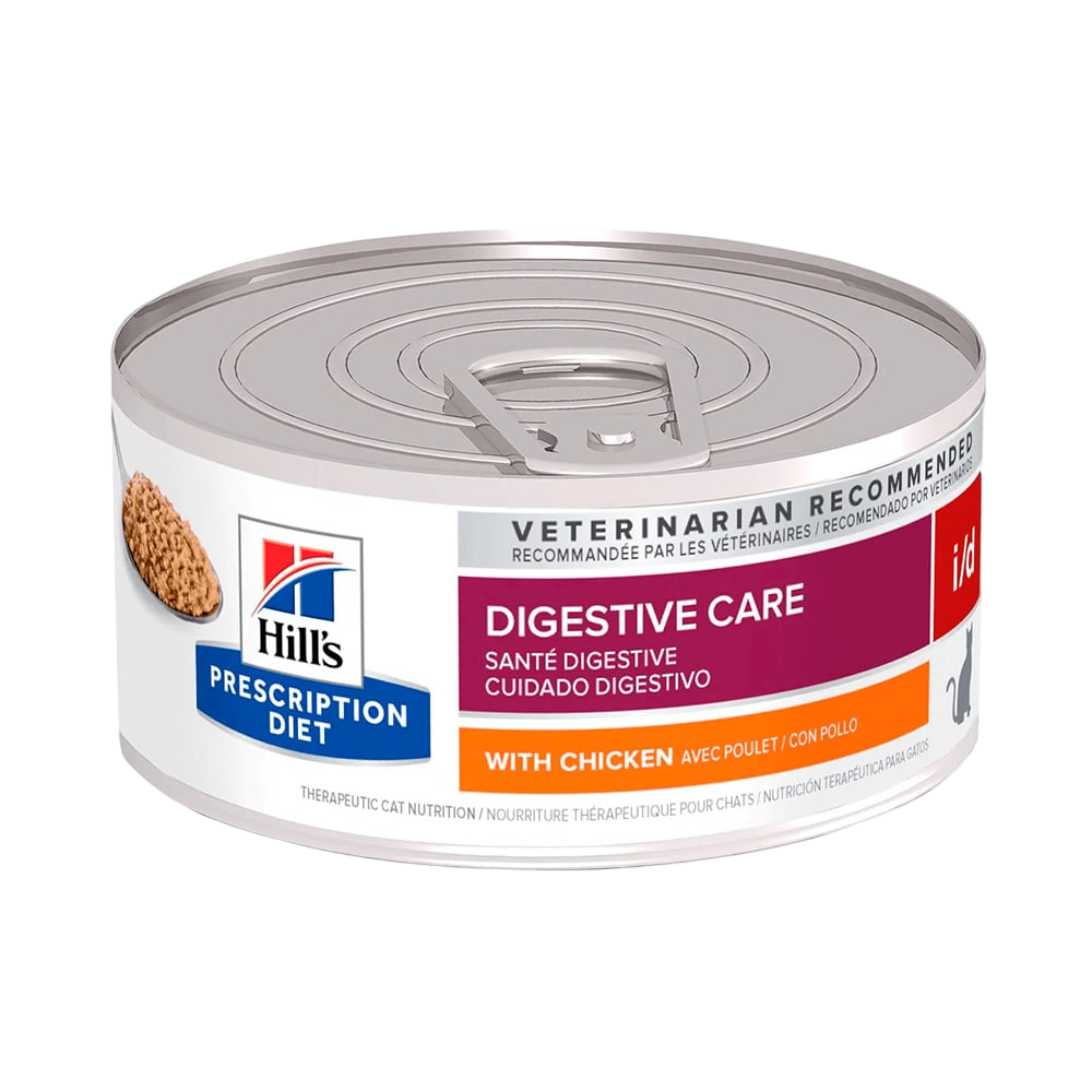 El alimento húmedo Digestive Care i/d de la línea Prescription Diet de Hill's es una comida húmeda para gatos diseñada para tratar gatos con problemas y trastornos gastrointestinales y digestivos. Su efectiva fórmula con rico sabor a pollo cuenta con nutrientes e ingredientes especiales que favorecerán la salud, mejorando no solo la digestión sino la calidad y aspecto de las heces. Contiene especiales ingredientes que será fáciles de digerir, antioxidantes y vitaminas que favorecerán el sistema inmunitario y es ideal para tratar enfermedades intestinales inflamatorias como colitis, gastritis y enteritis.